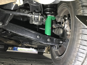 また、乗り心地だけでなくロールや振動の収まりの悪さが明らかに減ったことに気づき、純正ショックが劣化していたことも分かりました。真横などからチラッと見える緑色もワンポイントになり、満足です。