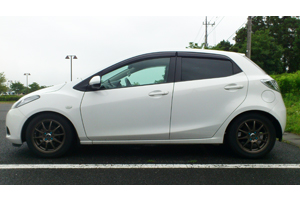 純正サスのままでタワーバー、フロアクロスバーを入れていましたが、ボーナスも出たことだし、思い切って車高調を入れようと考えていました。いろんなメーカーの中、安くても作りが良く、保証なども充実しているTEINに決め、デミオに装着出来る中で最高グレードのFLEX COMPACTを選び、EDFCを同時装着ました。用途は街乗りです。初車高調なので比較は出来ません。EDFCでシーンによって減衰を変えられる点は素晴らしいです。人を乗せるときは16段目、一人の時はいろいろ数値を変えて遊んでいます。今までは、制限速度内でもロールが怖く、手前でスピードを落としてたカーブでも、そのまますっと切り込めるようになりました。ピロアッパーマウントのおかげか、ハンドリングレスポンスが上がっていますが、ロードノイズ、ハンドルの振動が多少多くなりました。でもこれは、車を操ってる感があるので気にならないと思います。